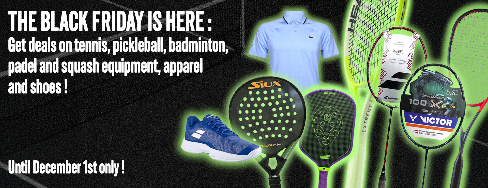 Get the best discounts on your favorite gear, new deals every week! Find the best prices on racquets, shoes, apparel, bags and more.