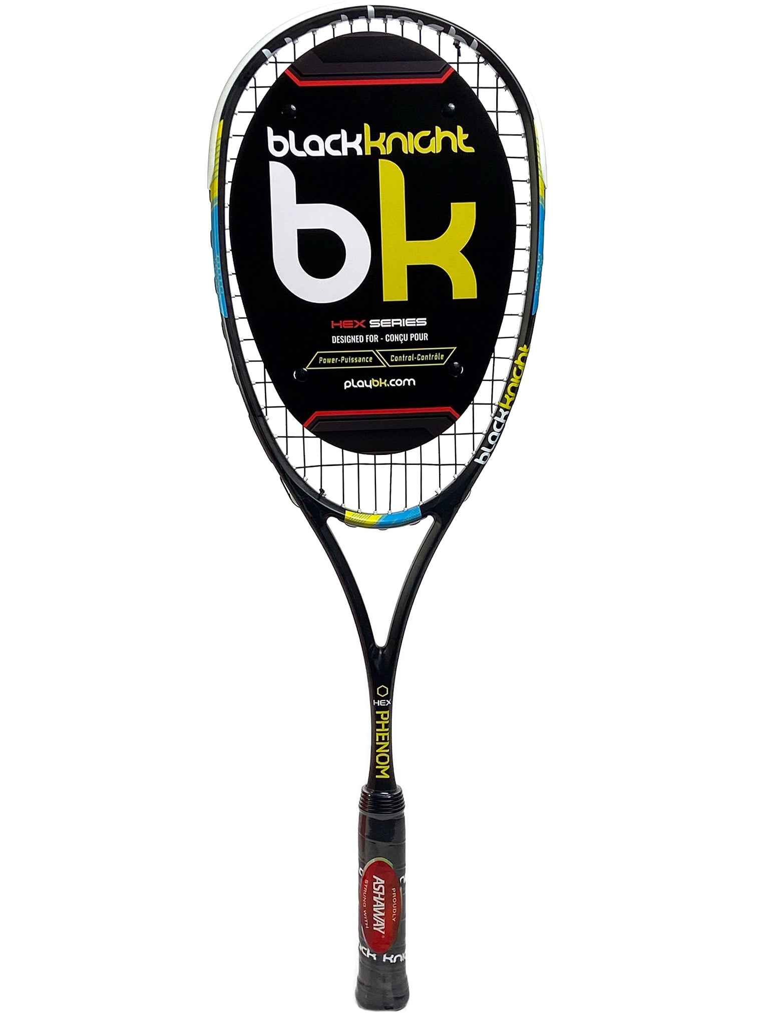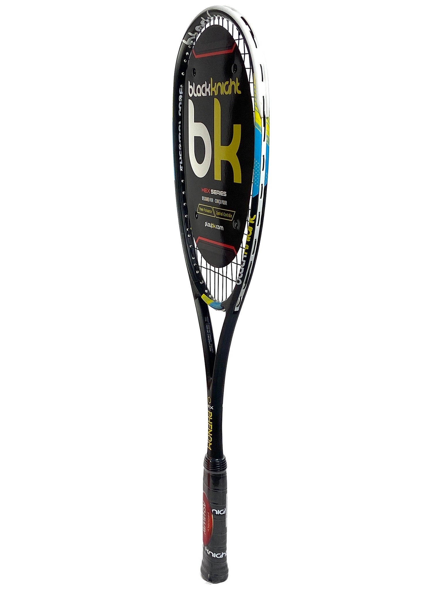 Important: This racquet manufacturing warranty on this product is 45 days. The Black Knight Hex Phenom is the newest addition to the 2017 squash range. Featuring Thermal Core technology and a unique hexagonal cross-section throughout the frame, this racquet eliminates vibration while still remaining headlight. The SuperNick ZX Micro string and RAD cushion grip offer superior durability and a comfortable grip.
