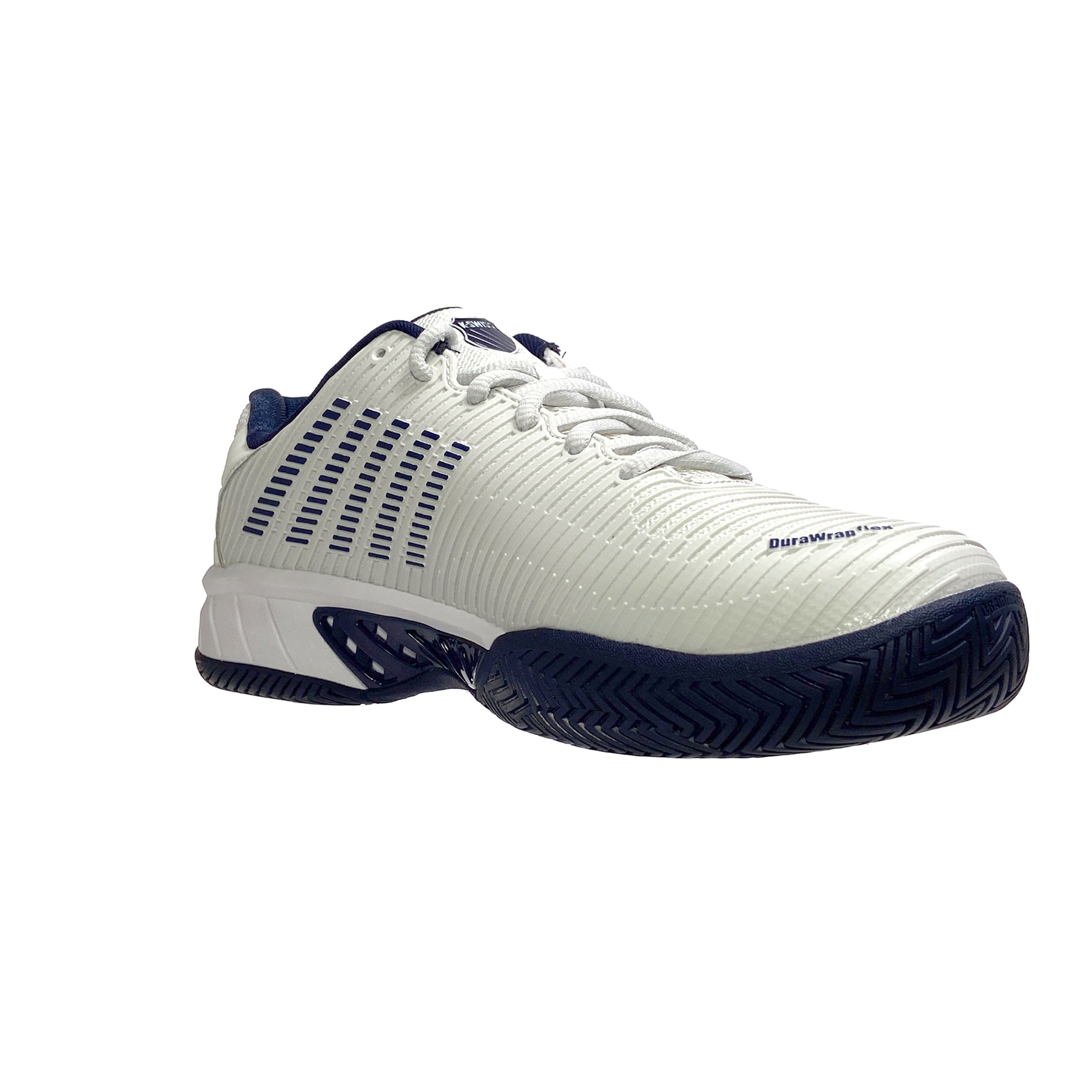 This shoe offers, by adding Surgelite midsole technology, the Hypercourt Express 2 (WIDE) becomes even lighter and more comfortable while keeping its trademark breathability and generous fit. Additionally, the brand introduces Durawrap Flex, giving the shoe more support with no break-in period. The new upper design instantly makes the model fresh and modern looking which will impress current and new tennis players who wear the shoe. Ideal for hard court playing surface.
