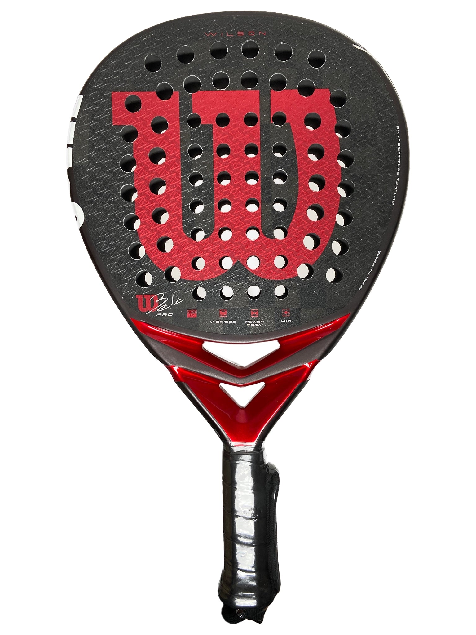The Bela Pro V3 is a testament to the legendary career of Fernando Belasteguin, one of the greatest padel players in history. Fueled by passion and an unrelenting drive to win, this meticulously crafted racket embodies his intensity, court vision, and technical expertise. The DuoGrid hole pattern maintains its firm, responsive feel for power, while the V-Bridge throat stabilizes each shot. Enhanced with Spin2 texture on the face for improved spin and a Stability Channel that expands the sweet spot, the Bela Pro V3 offers incredible precision and control. Its hybrid construction combines a high-density foam core with a 24K Carbon Face, delivering exceptional feel and connection with the ball — ideal for advanced, attacking players looking to dominate.