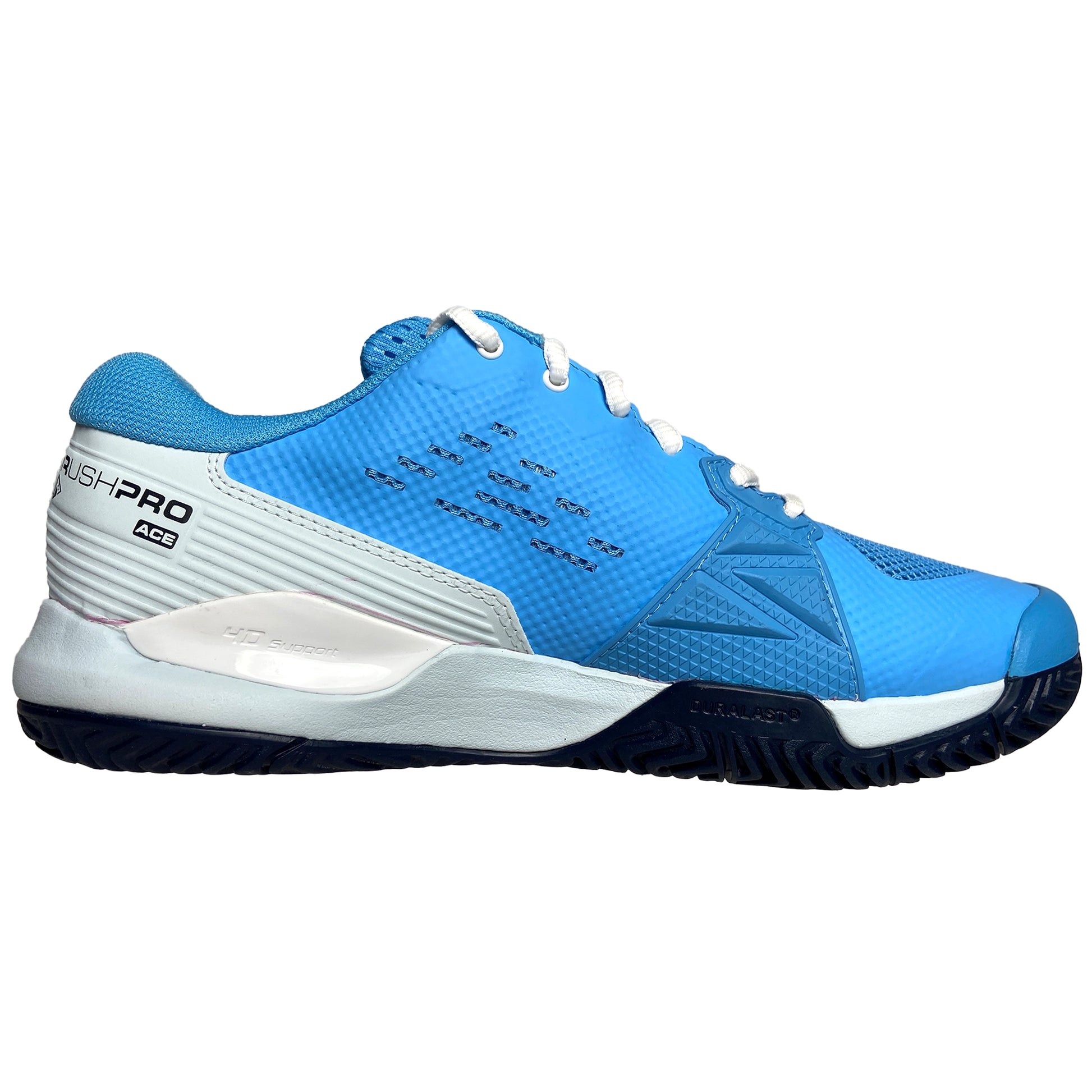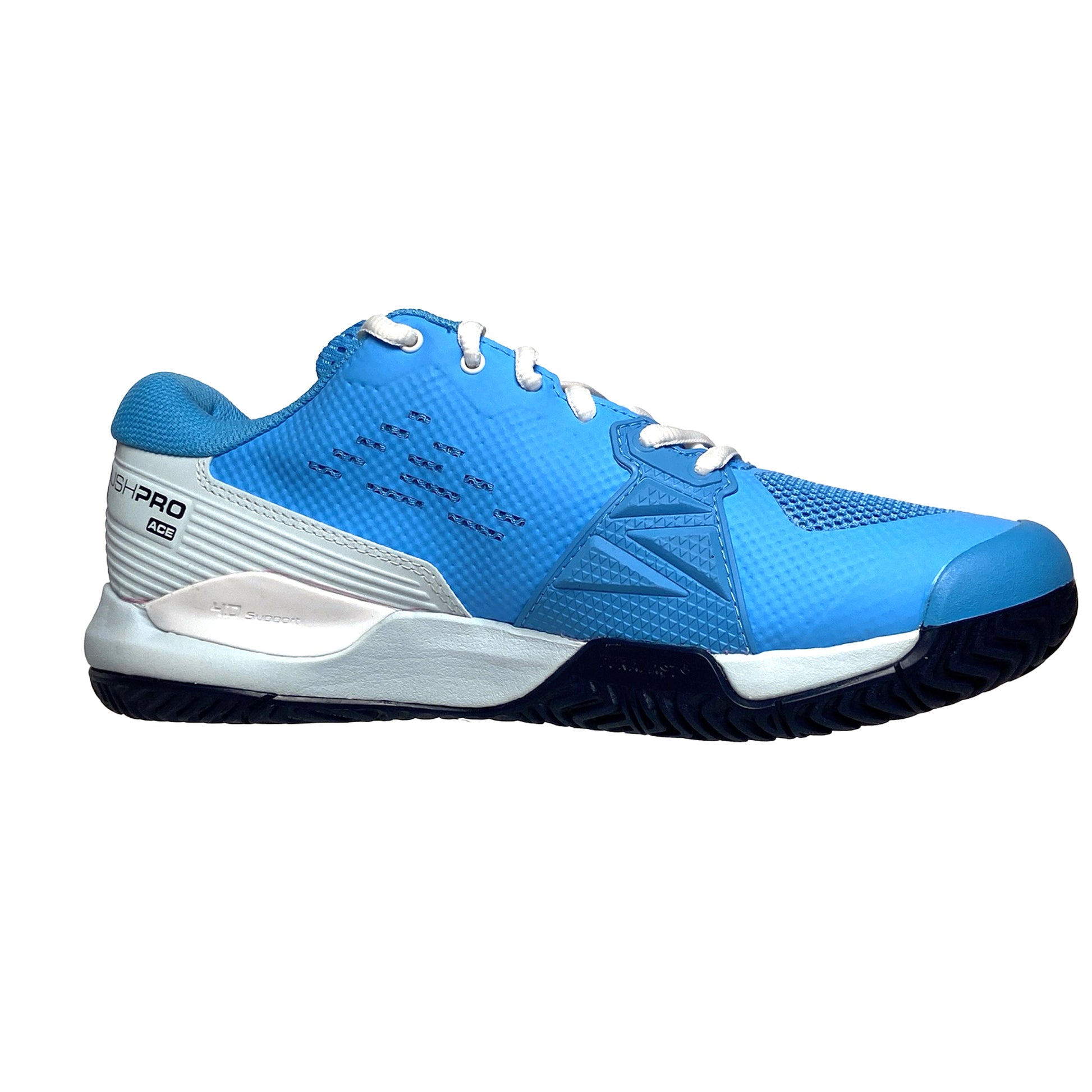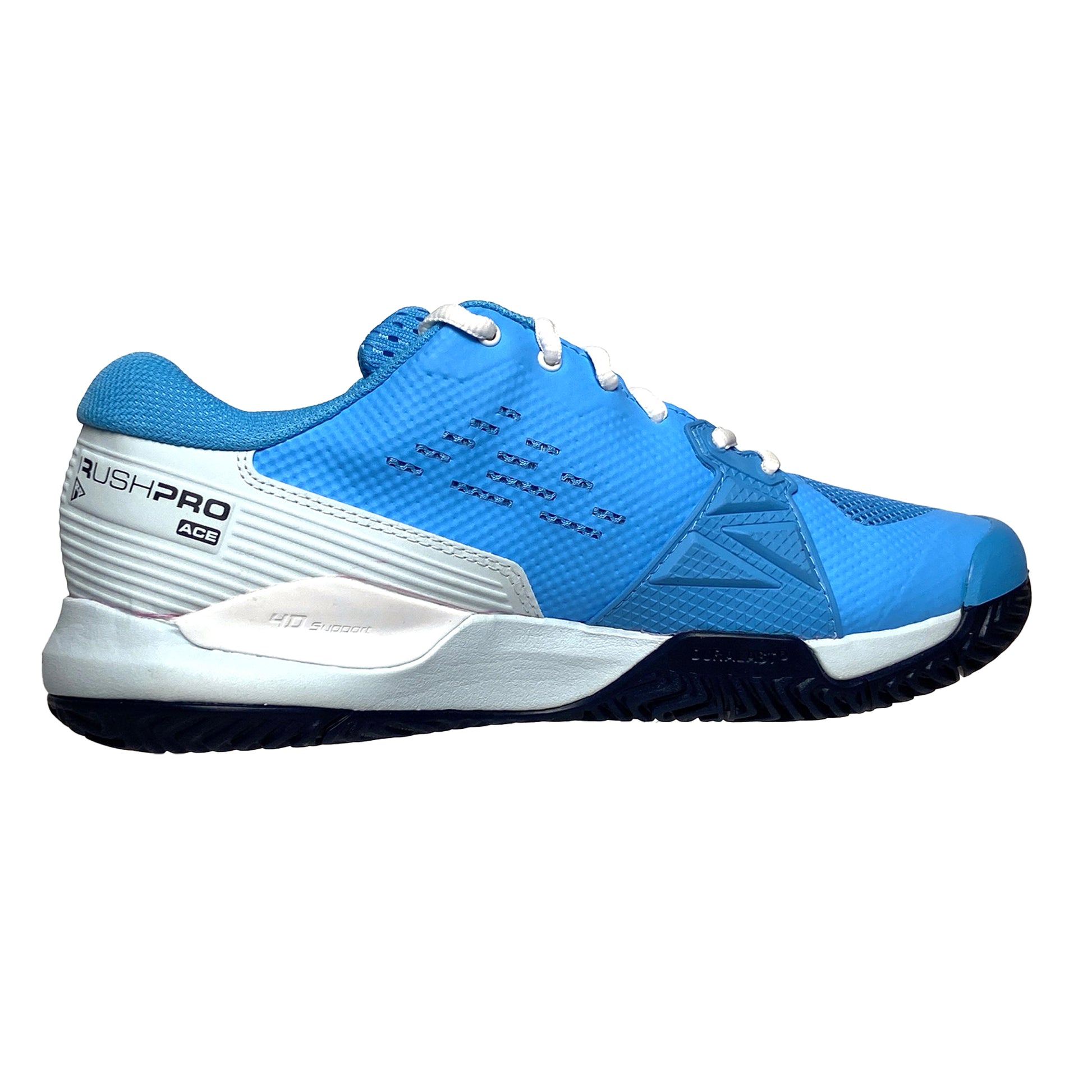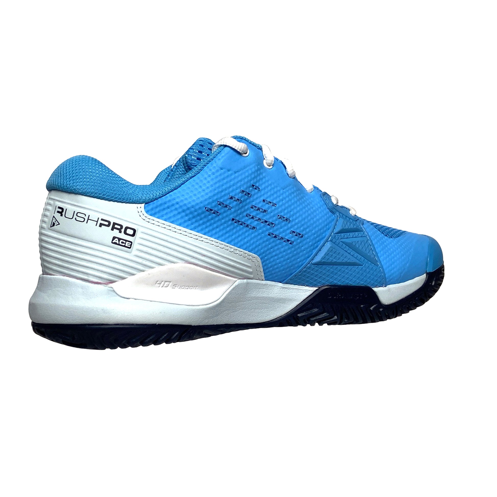 The most generous fit in the popular Rush Pro line, the Rush Pro Ace earns high grades for tennis players with a strong preference for comfort on the court. Highlighted by its 2E fit to accommodate wider feet, this shoe also helps stabilize the foot through its 4D Support Chassis: a symmetrical heel-toe chassis that limits supination to help control pivot movements. Layered with Sensifeel on the upper for additional breathability, the Rush Pro Ace delivers an appealing blend of comfort, stability and aesthetic for supreme confidence with every step.
