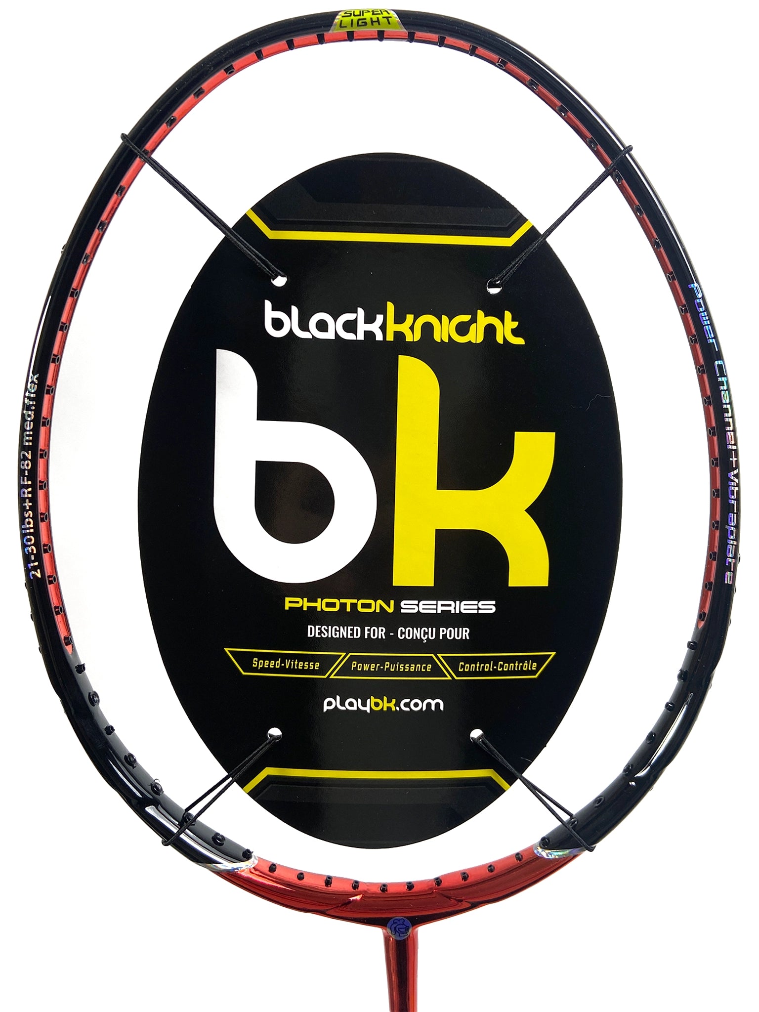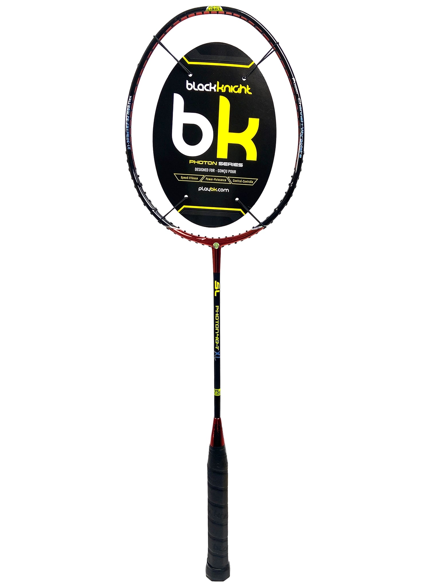 Important: La garantie de défauts de manufacture sur ce produit est de 45 jours. La Black Knight Photon 40T XL appartient à la série des raquettes SuperLite de Black Knight. Son poids de 75g la rend manoeuvrable et permet d'augmenter l'accélération de l'élan de 20% en comparaison avec les raquettes conventionnelles. Elle est munie des technologies Power Channel qui procure une surface de frappe plus large, sans augmenter la taille de la tête de la raquette, et VibraPlate qui réduit la torsion lors de l'impact pour plus de stabilité et qui élimine les vibrations. Enfin, la longueur supplémentaire de la raquette permet d'ajouter 5% à la vitesse de l'élan et procure une zone de frappe plus haute. Le résultat est éloquent: une frappe solide et puissante, un contrôle exceptionnel lors des coups décentrés ainsi qu'un haut niveau de confort. Cette raquette s'adresse aux joueurs intermédiaires et avancés recherchant une raquette légère, puissante, confortable et manoeuvrable.