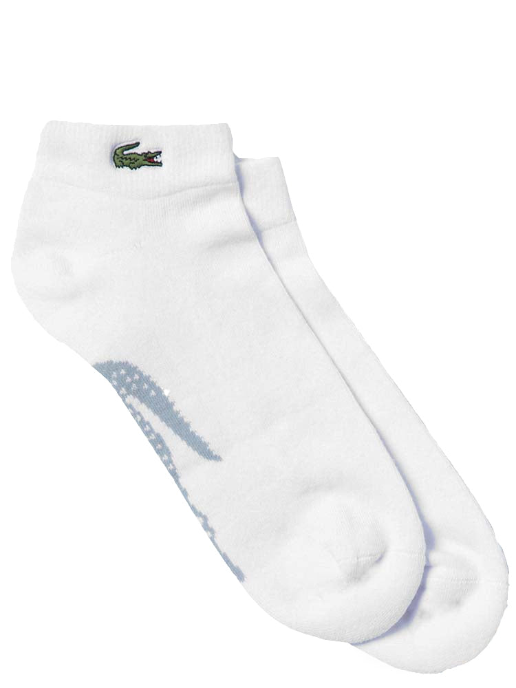 Un marquage Lacoste oversize contrasté signe cette paire de chaussettes basses unies. Confectionnées en jersey de coton stretch, doux et résistant, elles présentent des chevilles côtelées et un petit crocodile vert brodé. Pour des entraînements au top du confort.