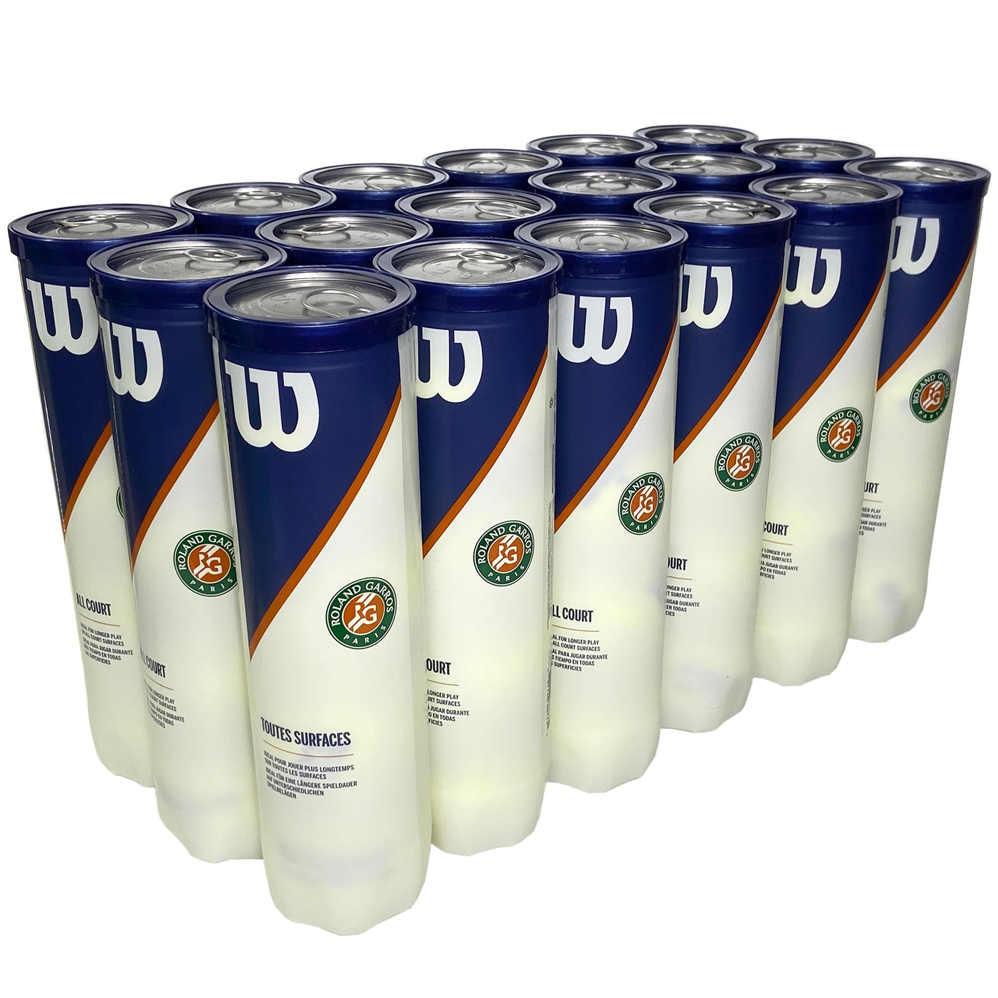 Caisse de balles Wilson Roland Garros pour terre battue (18 tubes de 4)