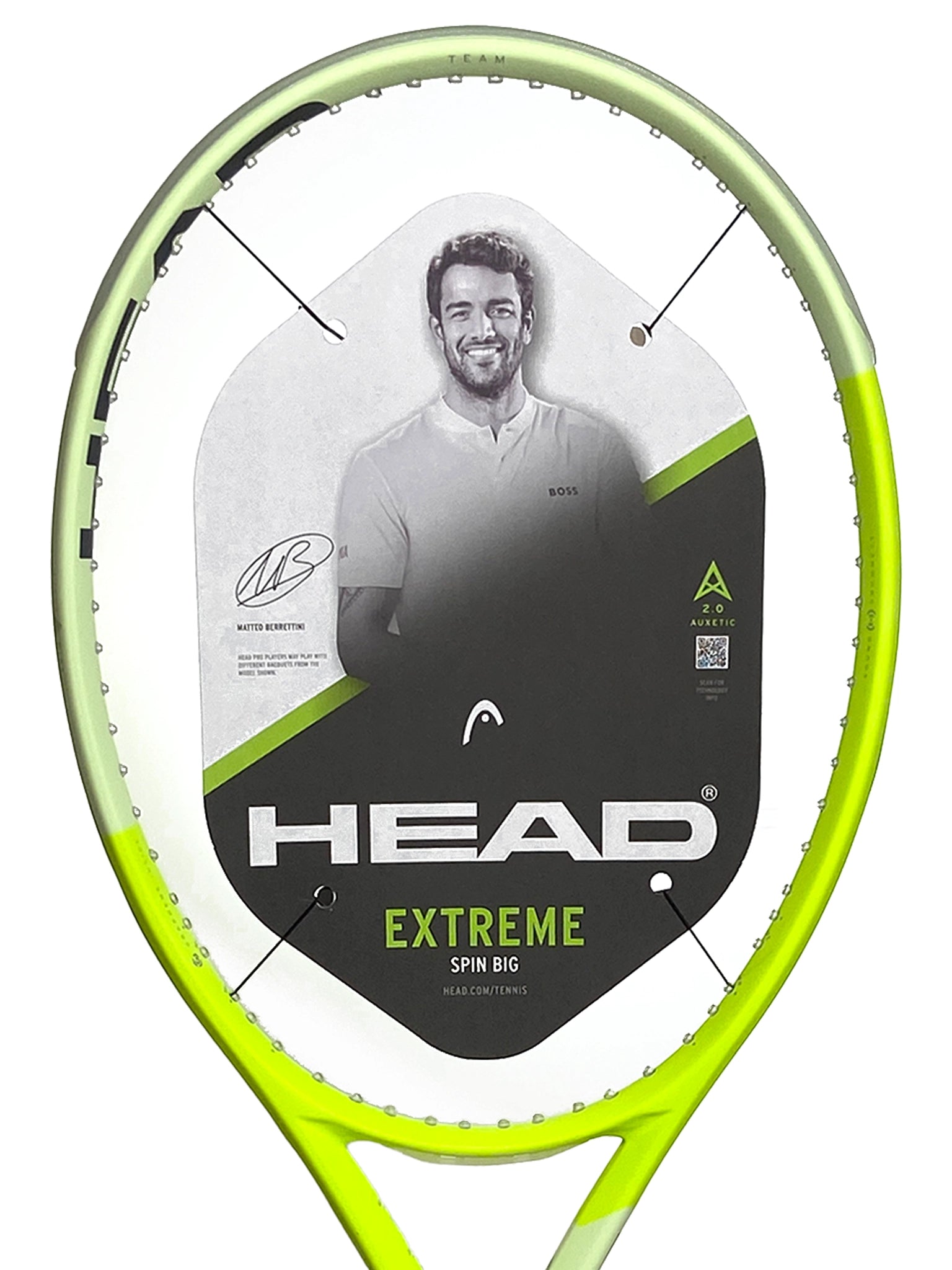 Introducing the new generation of EXTREME TEAM racquets, endorsed by Matteo Berrettini. With Auxetic 2.0 technology for enhanced stability and spin, this racquet allows team players to dictate the game. The unique spin grommets provide a powerful trampoline effect, while the transparent design adds a fresh and daring look. Upgrade your game today.