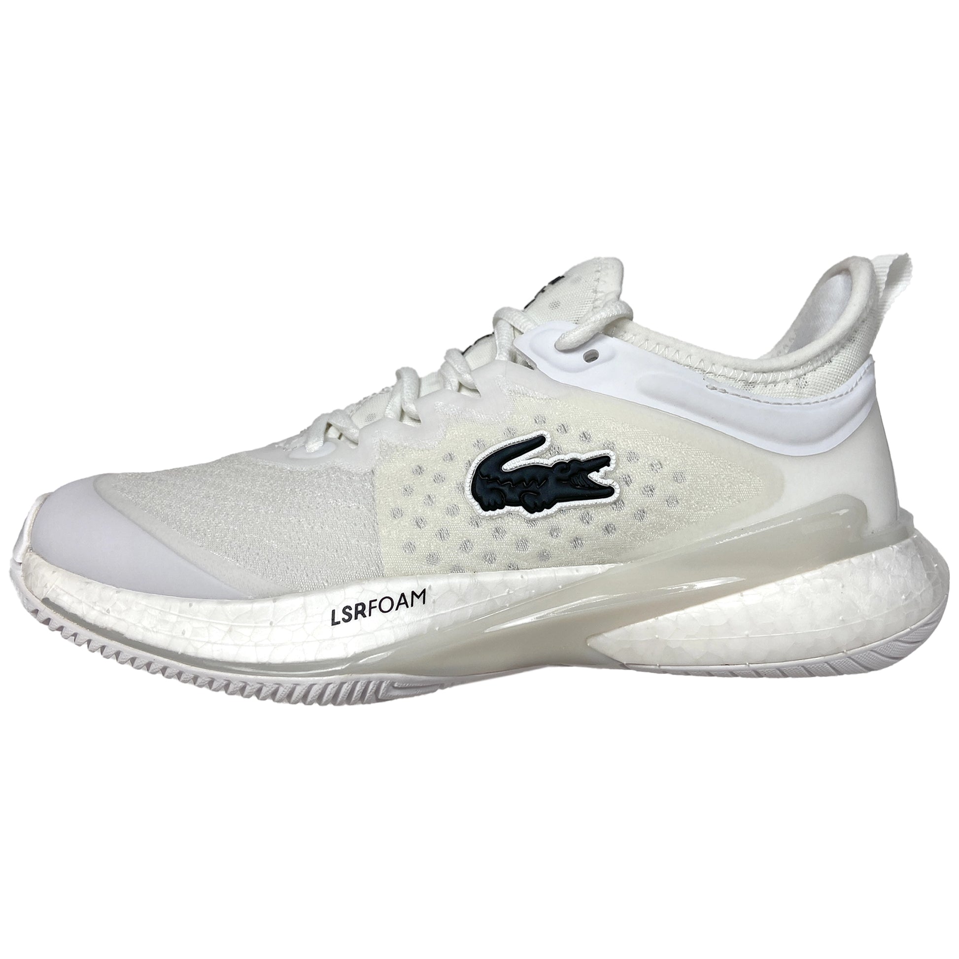 Enhanced with an energy return-boosting Pebax plate, the synthetic and textile linings offer unparalleled support and comfort. The rubber foxing outsole, featuring Lacoste's new compound, enhances grip, speed, and agility, allowing you to make quick turns and movements with ease.