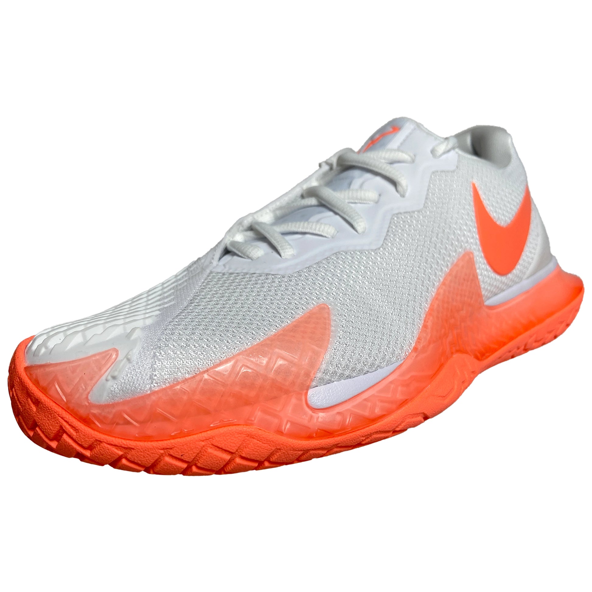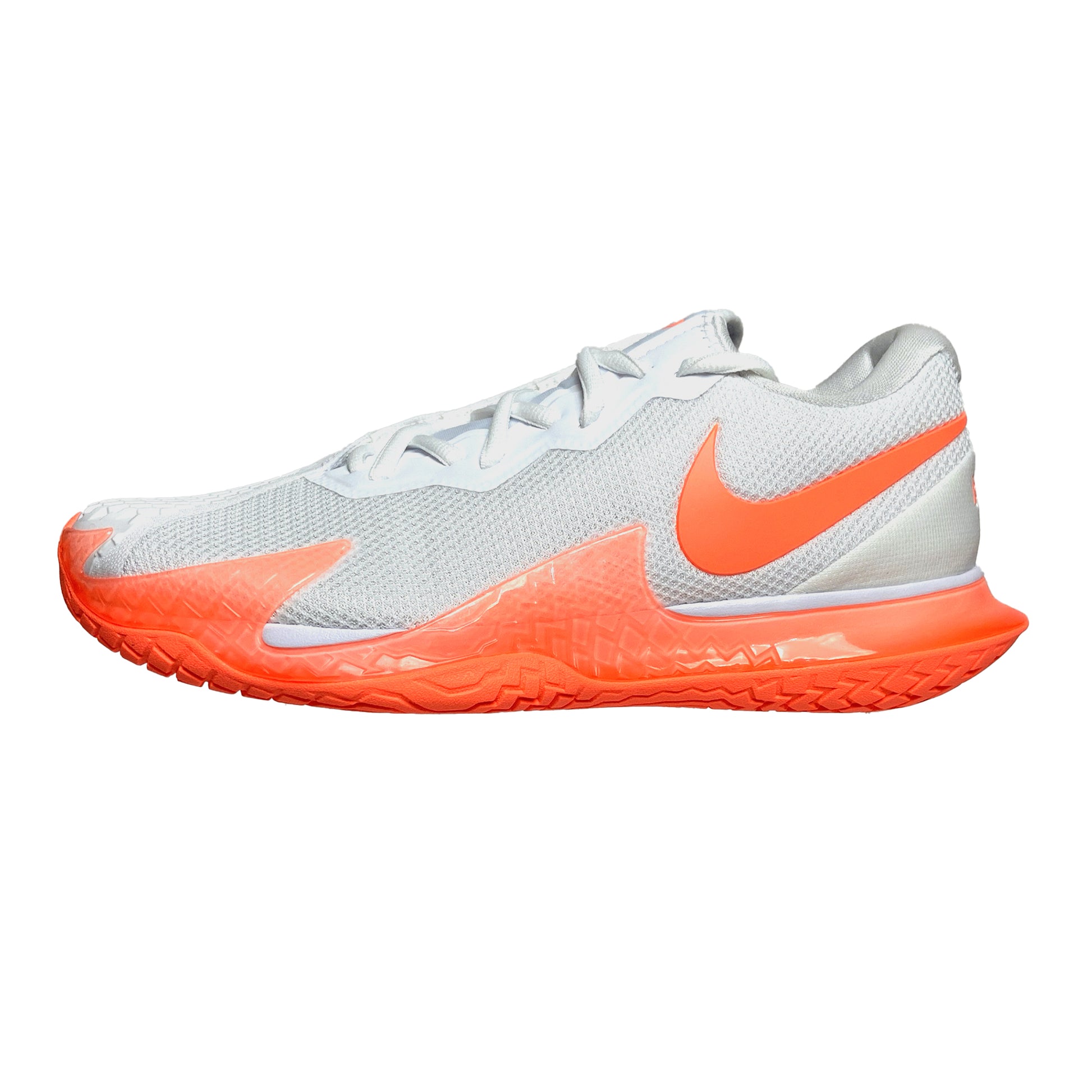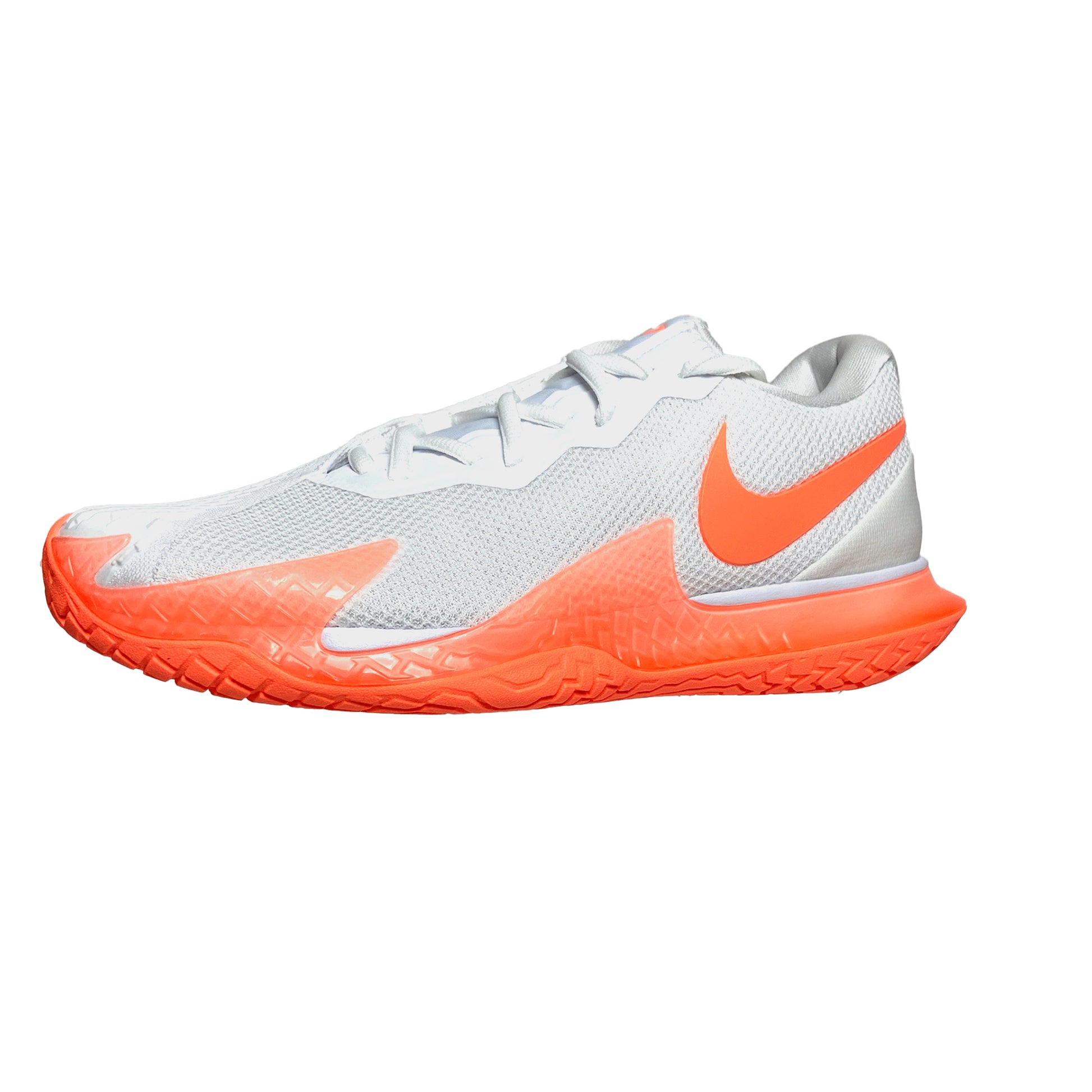 The NikeCourt Air Zoom Vapor Cage 4 is innovated to withstand your toughest matches—thanks to durable rubber and flexible plastic. Unique laces are hidden for extra durability while sliding. Engineered and designed for the #1 player in the world, the one and only Rafa Nadal, the Vapor Cage 4 will meet the standards of players who crave serious support, enhanced stability, ridiculous levels of responsiveness and maximum durability. A Zoom Air unit in the forefoot offers players more energy as they spring into their next shot. Hard court sliders will appreciate how the outsole has been integrated into the upper where aggressive movers need it most for enhanced durability. Foot frame technology increases stability and reaction time. Players of all levels who need support and can be hard on their shoes will want to look here before gravitating toward lighter, less durable options. Upper: Unique lacing system wraps around your feet for support and is hidden for durability. Breathable, supportive upper hugs feet for step-in comfort. Midsole: Zoom Air unit in the forefoot for more energy and a responsive, springy feel. Lateral foot frame helps with stability and responsiveness. Outsole: Generative design blends rubber and Kurim for extra durability where needed. Beefed up durability for players who slide.