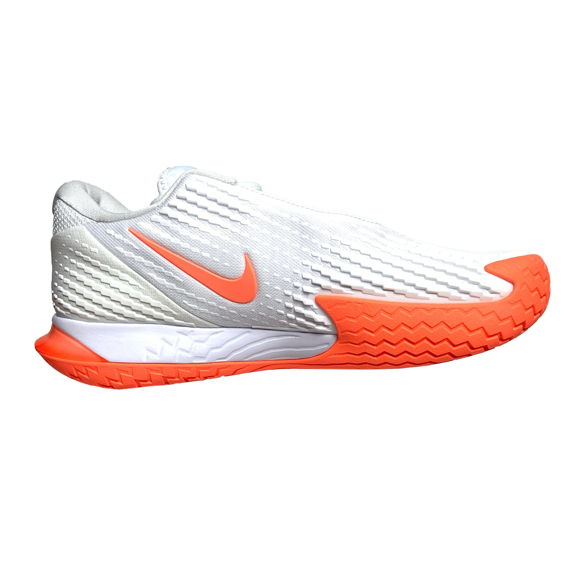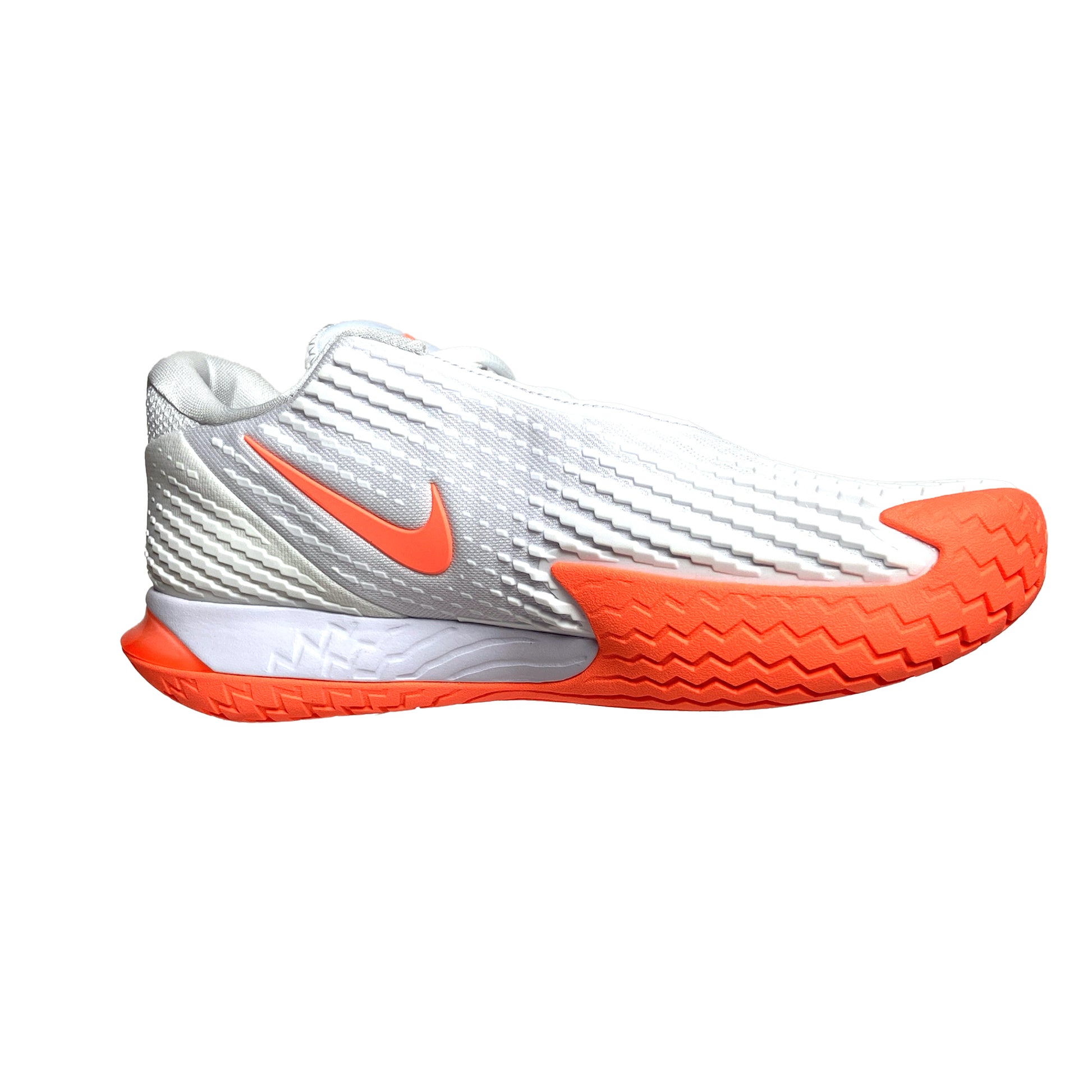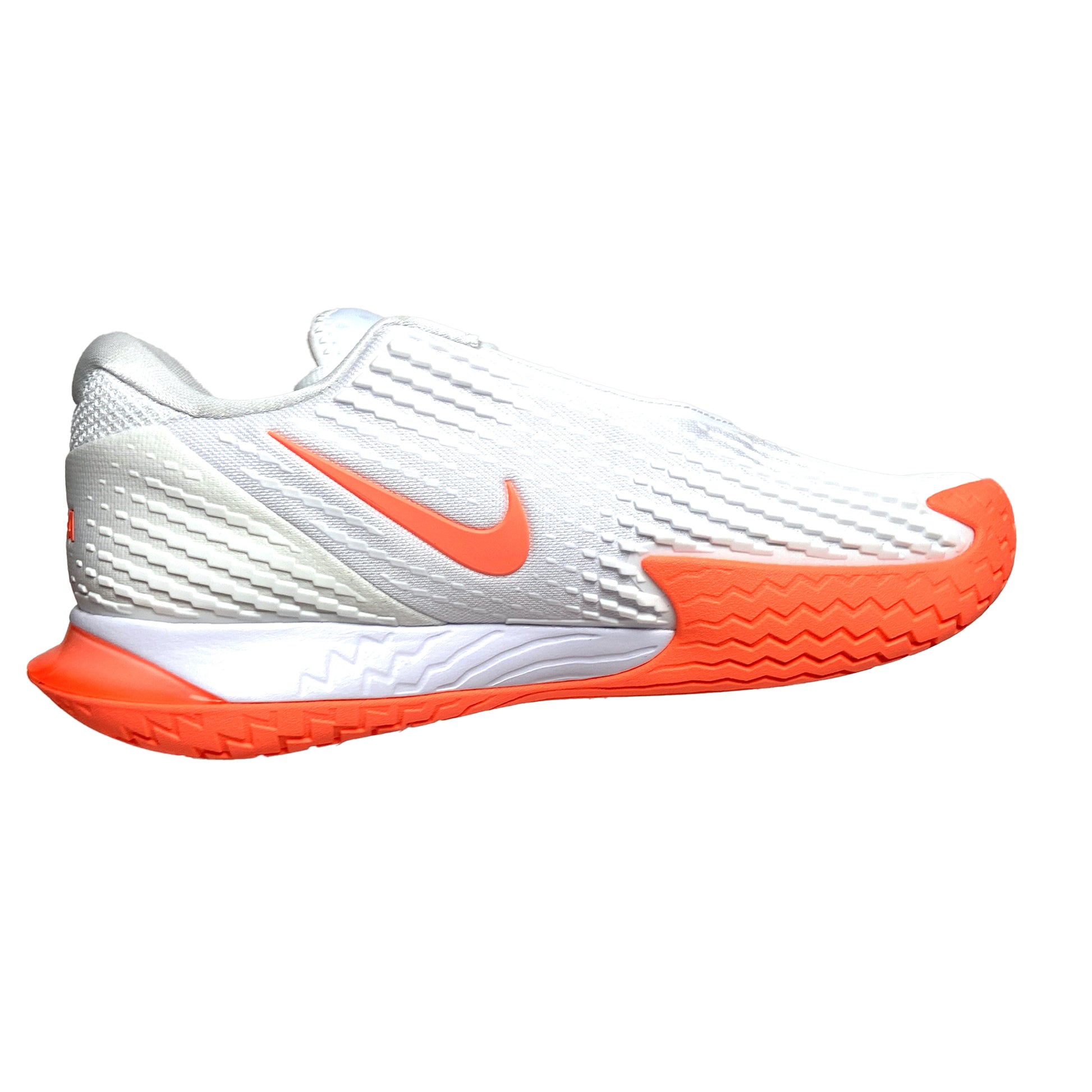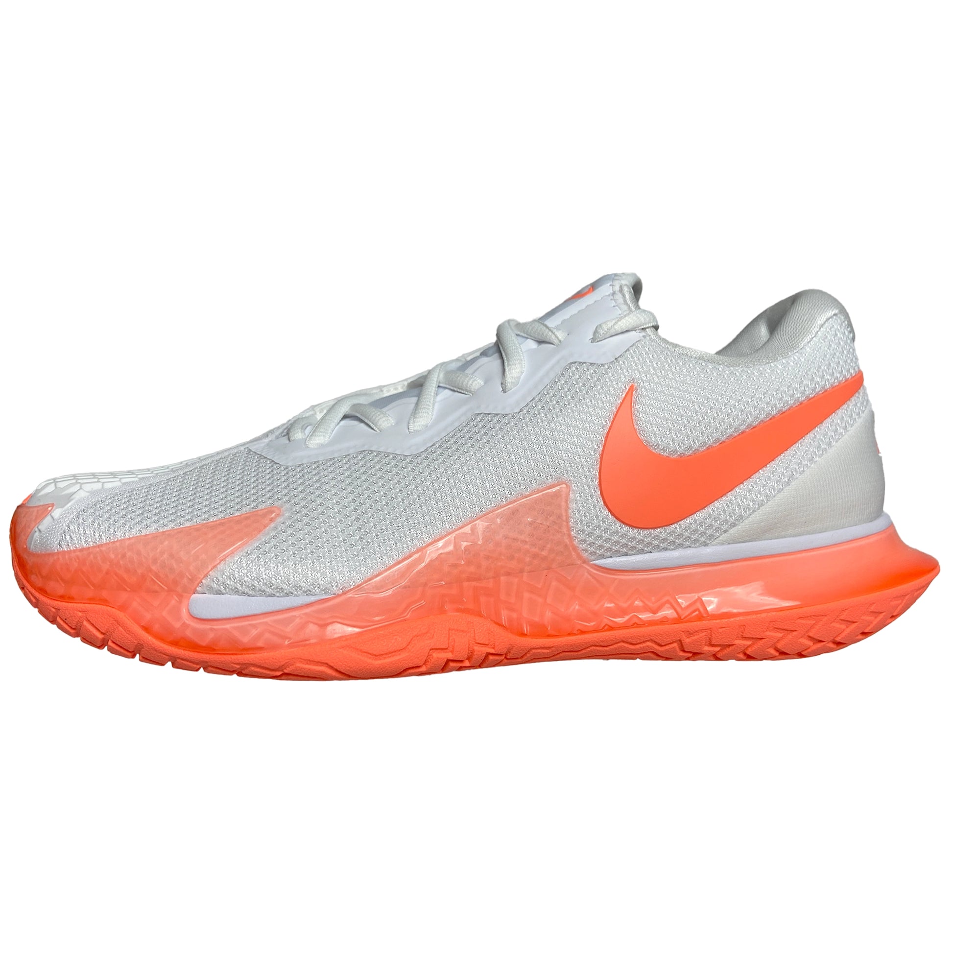 The NikeCourt Air Zoom Vapor Cage 4 is innovated to withstand your toughest matches—thanks to durable rubber and flexible plastic. Unique laces are hidden for extra durability while sliding. Engineered and designed for the #1 player in the world, the one and only Rafa Nadal, the Vapor Cage 4 will meet the standards of players who crave serious support, enhanced stability, ridiculous levels of responsiveness and maximum durability. A Zoom Air unit in the forefoot offers players more energy as they spring into their next shot. Hard court sliders will appreciate how the outsole has been integrated into the upper where aggressive movers need it most for enhanced durability. Foot frame technology increases stability and reaction time. Players of all levels who need support and can be hard on their shoes will want to look here before gravitating toward lighter, less durable options. Upper: Unique lacing system wraps around your feet for support and is hidden for durability. Breathable, supportive upper hugs feet for step-in comfort. Midsole: Zoom Air unit in the forefoot for more energy and a responsive, springy feel. Lateral foot frame helps with stability and responsiveness. Outsole: Generative design blends rubber and Kurim for extra durability where needed. Beefed up durability for players who slide.