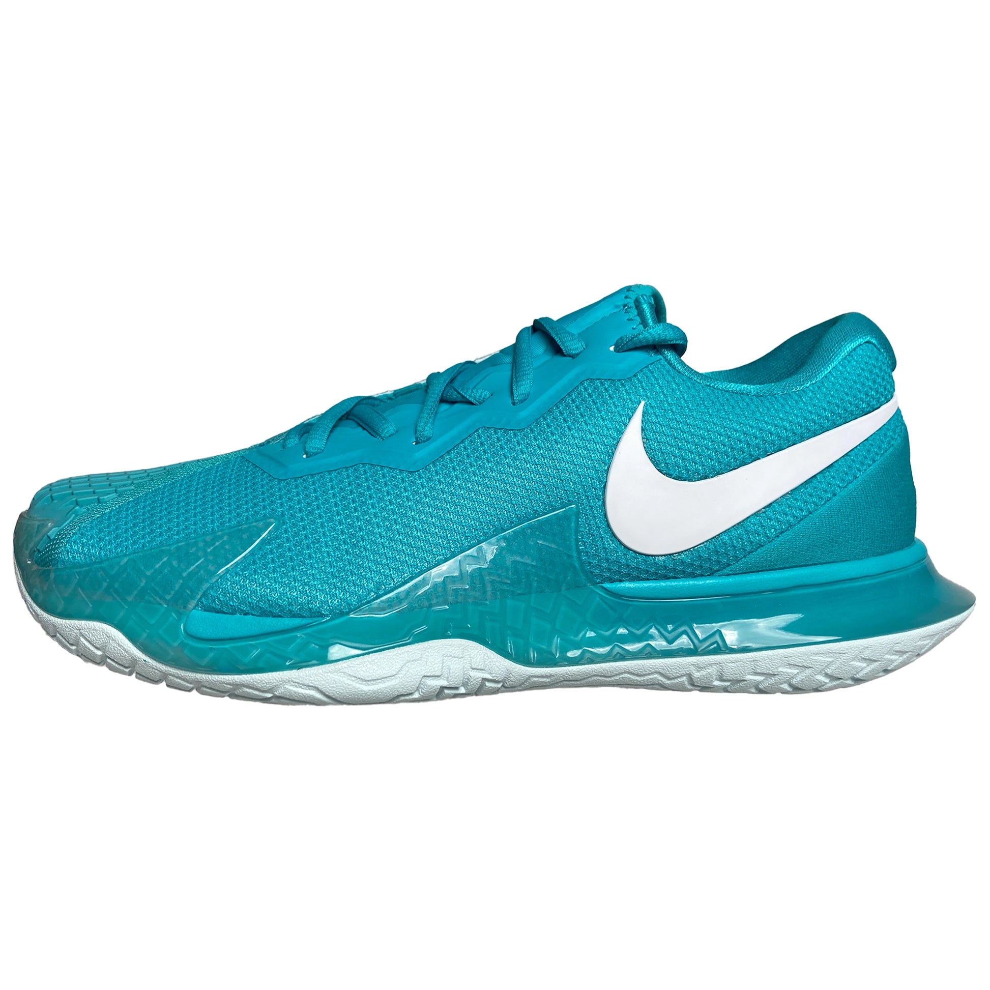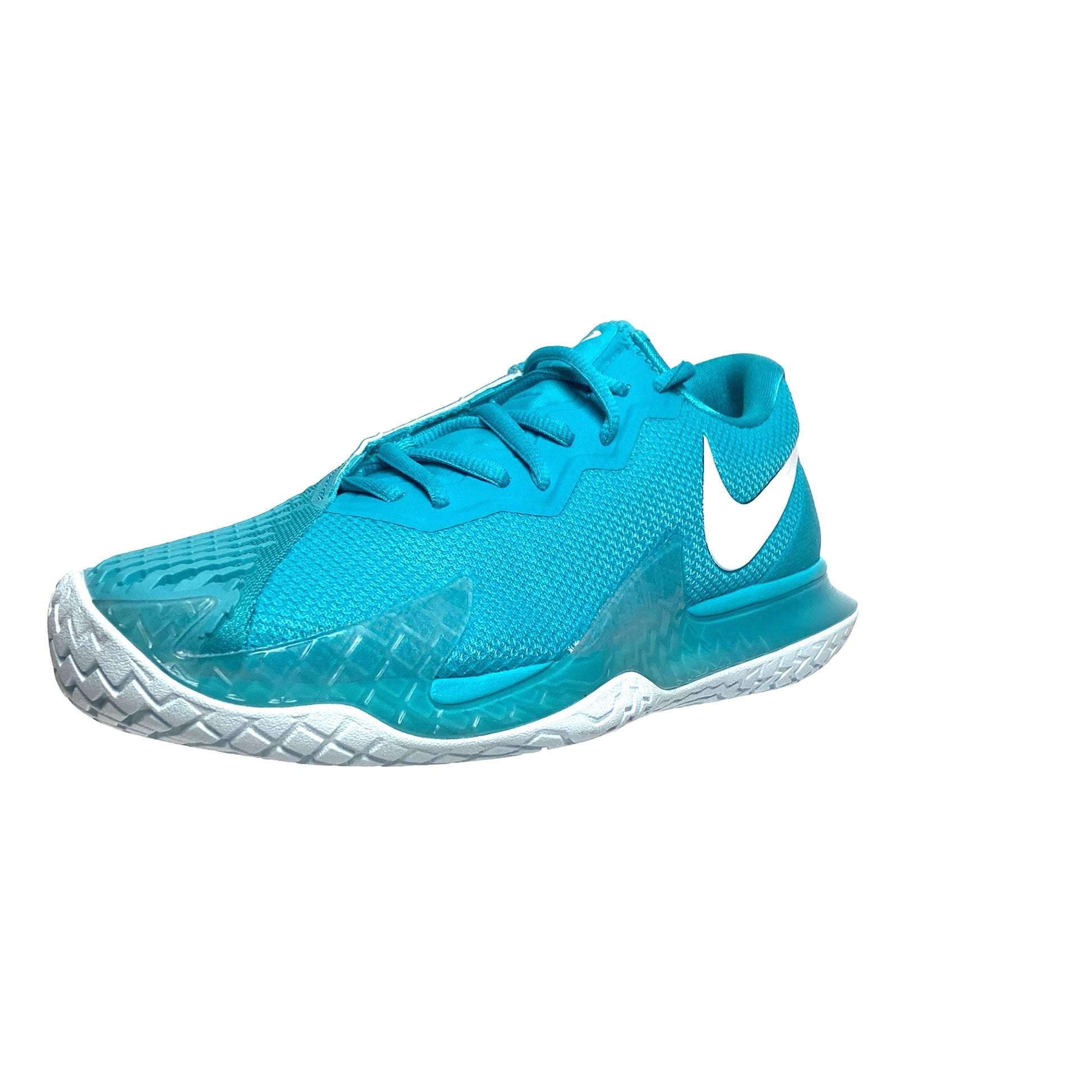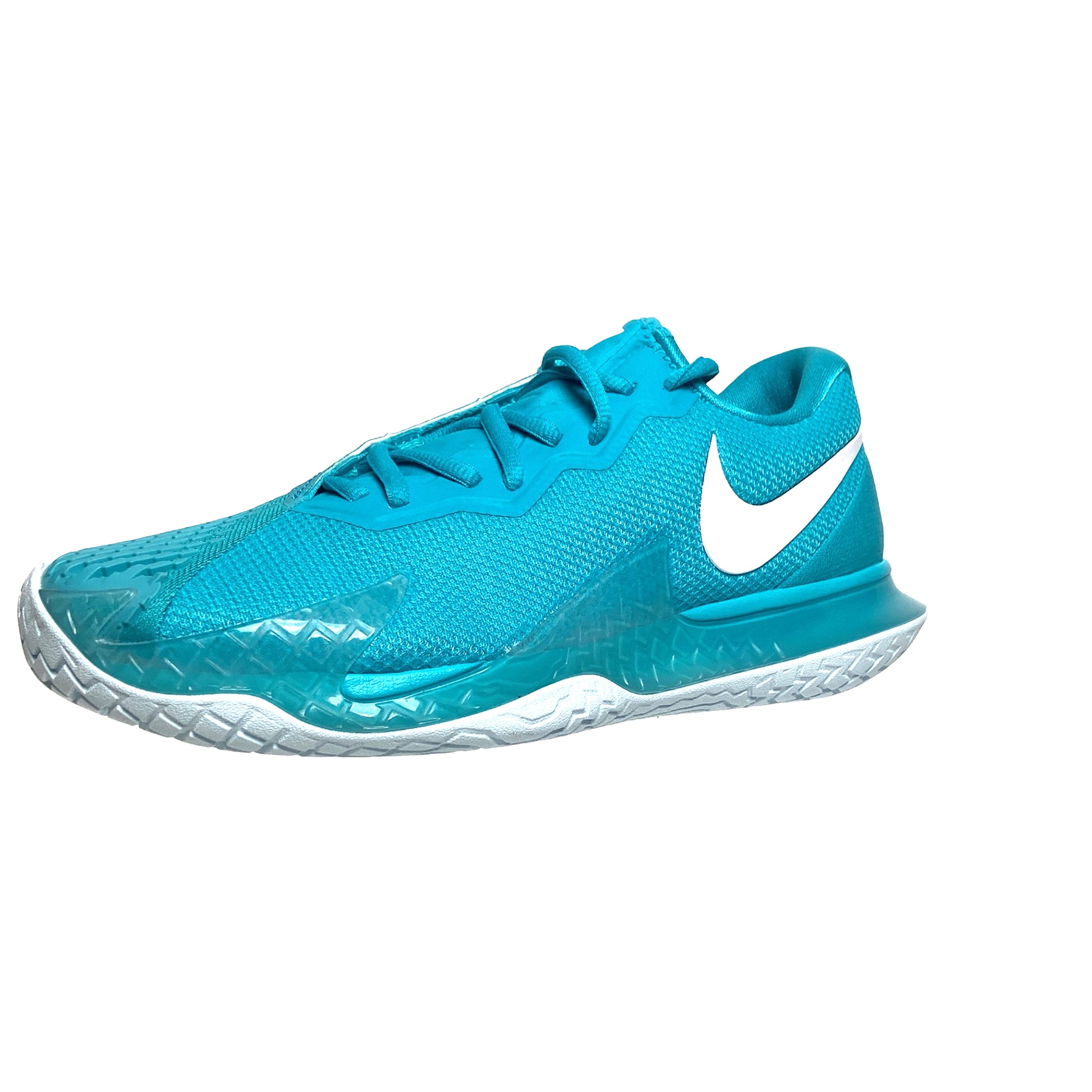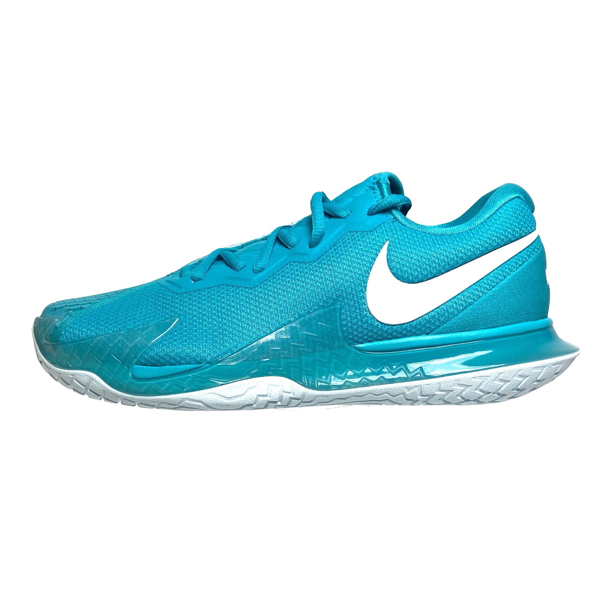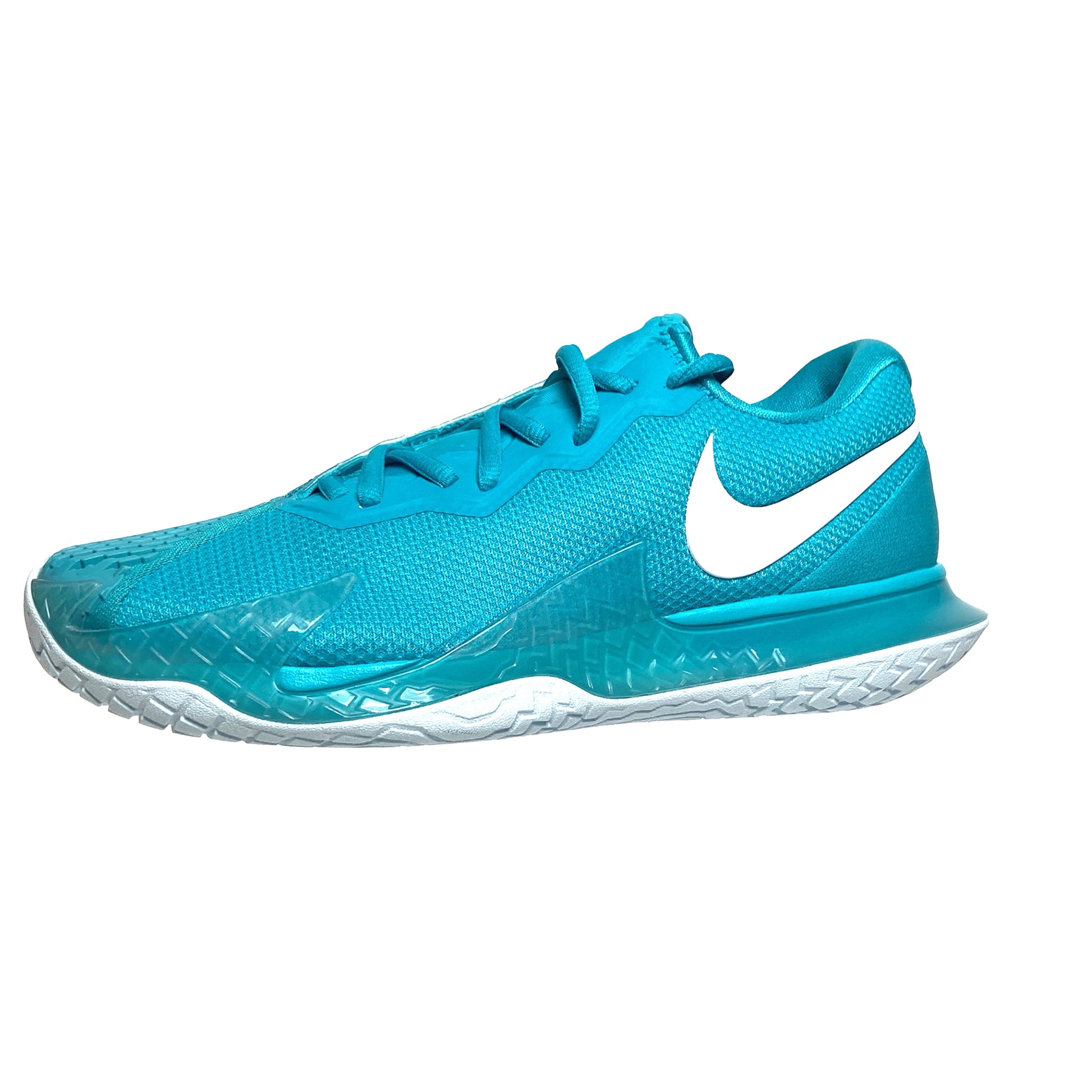 The NikeCourt Air Zoom Vapor Cage 4 is innovated to withstand your toughest matches—thanks to durable rubber and flexible plastic. Unique laces are hidden for extra durability while sliding. Engineered and designed for the #1 player in the world, the one and only Rafa Nadal, the Vapor Cage 4 will meet the standards of players who crave serious support, enhanced stability, ridiculous levels of responsiveness and maximum durability. A Zoom Air unit in the forefoot offers players more energy as they spring into their next shot. Hard court sliders will appreciate how the outsole has been integrated into the upper where aggressive movers need it most for enhanced durability. Foot frame technology increases stability and reaction time. Players of all levels who need support and can be hard on their shoes will want to look here before gravitating toward lighter, less durable options. Upper: Unique lacing system wraps around your feet for support and is hidden for durability. Breathable, supportive upper hugs feet for step-in comfort. Midsole: Zoom Air unit in the forefoot for more energy and a responsive, springy feel. Lateral foot frame helps with stability and responsiveness. Outsole: Generative design blends rubber and Kurim for extra durability where needed. Beefed up durability for players who slide.