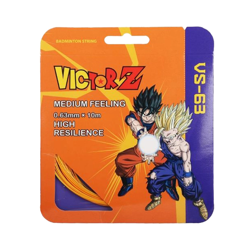 The Victor x Dragon Ball Z Strings VS-63DBZ EO is a limited-edition badminton string that delivers high-speed performance with bold anime-inspired flair. Its 0.63mm gauge provides excellent repulsion and control, but what truly sets it apart is its distinctively clear, explosive hitting sound with every shot. Perfect for players who want both precision and presence on the court, this string brings the energy of Dragon Ball Z to your game.