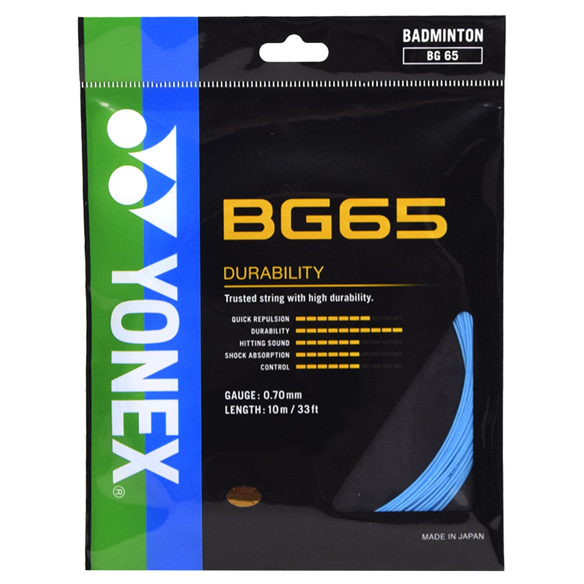 This 0.70mm multifilament string with specially braided fibre increases string abrasion durability. The BG65's all-round performance makes it the choice of the world's top players.